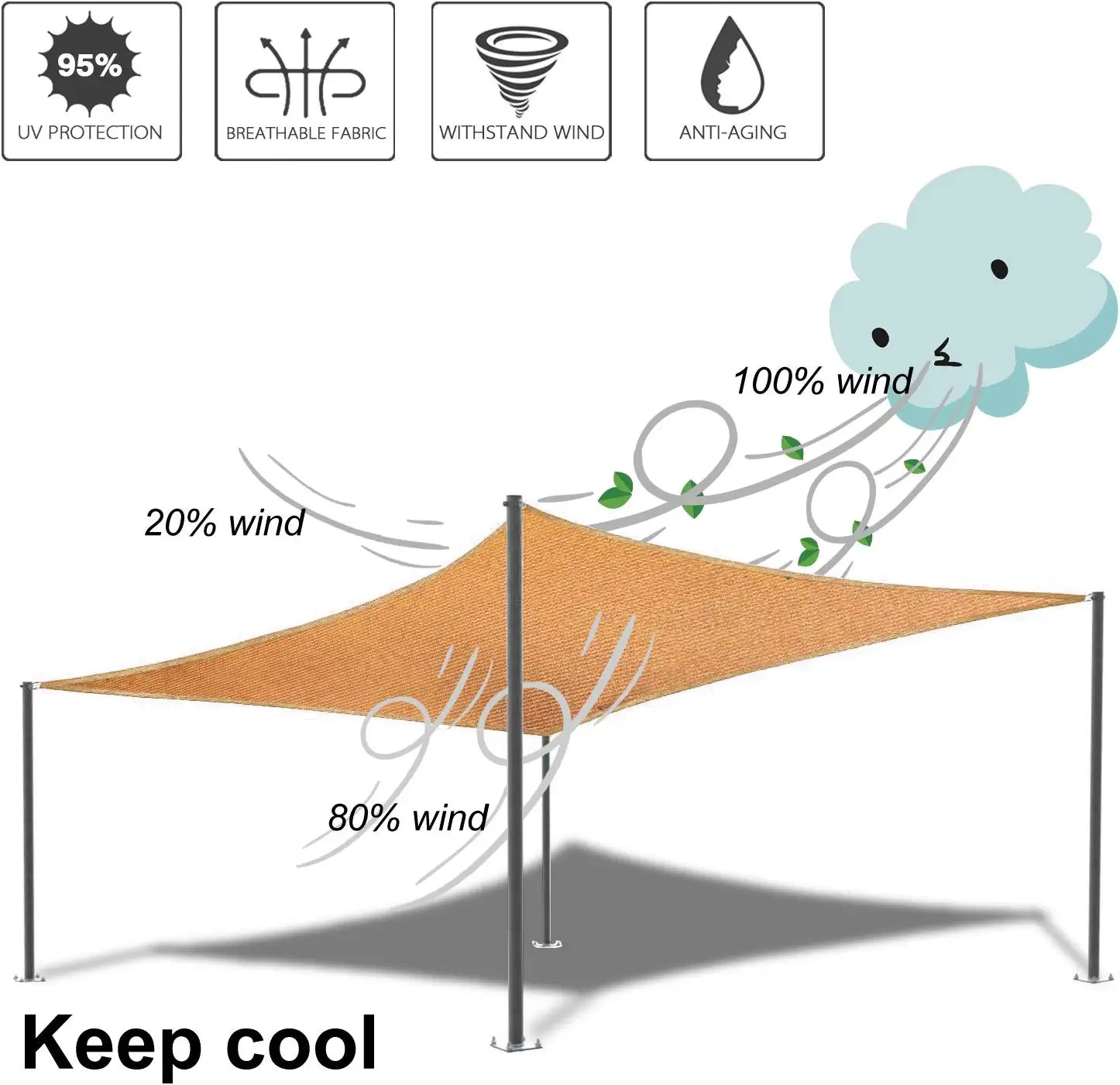 : Allows people to enjoy beautiful outdoor weather, easy to install, can block ultraviolet rays while allowing cool air to circulate.